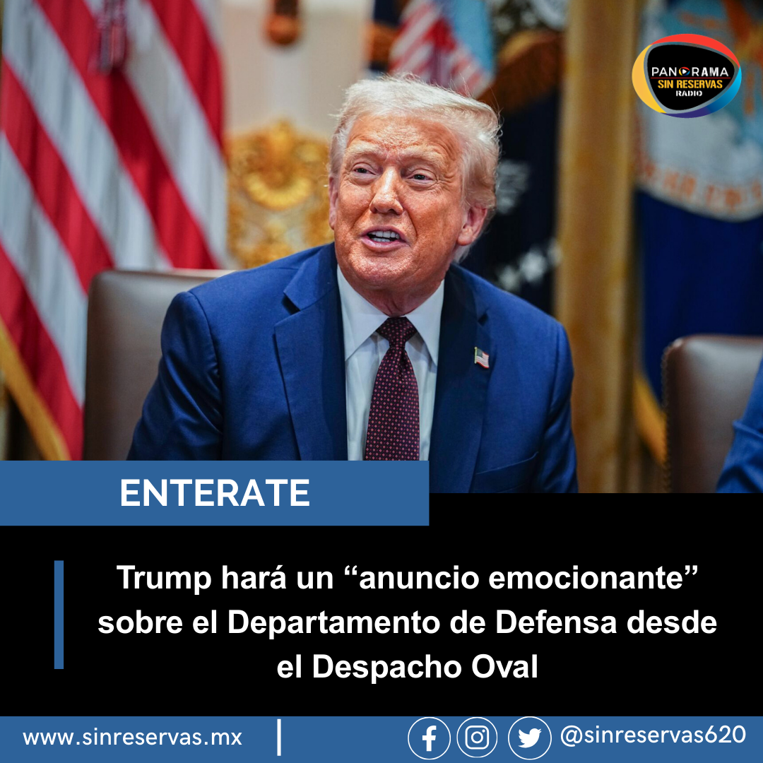 El presidente de Estados Unidos, Donald Trump, adelantó que este martes hará un “anuncio emocionante” desde el Despacho Oval respecto al Departamento de Defensa, informó la Casa Blanca.