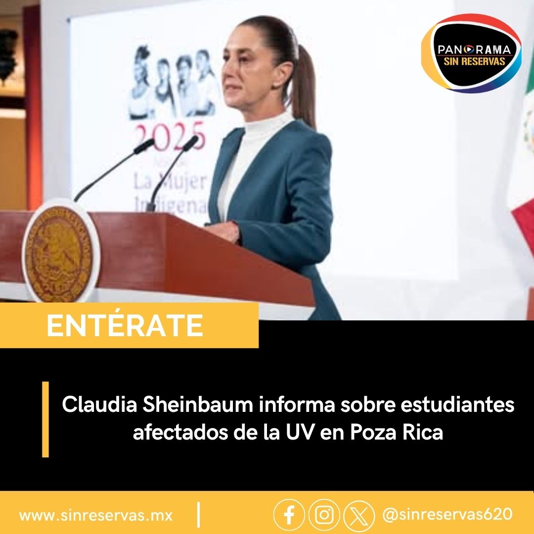 La presidenta Claudia Sheinbaum Pardo informó este 13 de octubre de 2025 que la Universidad de Veracruz (UV) realiza un censo para identificar a estudiantes afectados por las intensas lluvias e inundaciones en Poza Rica. Hasta el momento, se han confirmado dos estudiantes fallecidos a causa de las precipitaciones.