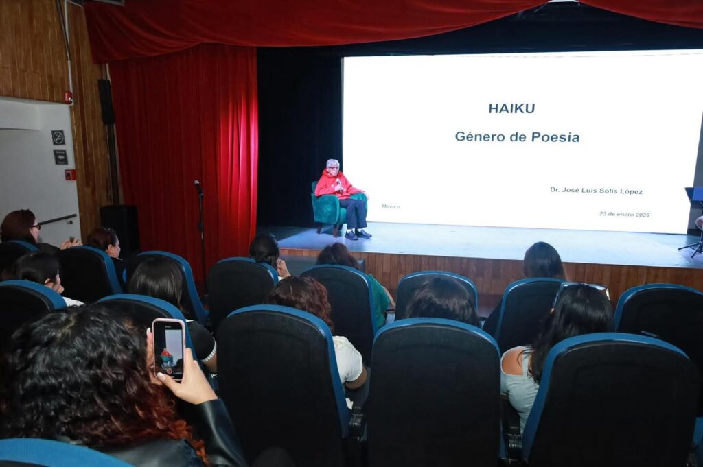 La performance “Versos Tropicales”, con la participación del Taller–Poesía Haiku a cargo del Doctor José Luis Solís López, se presentó esta tarde como parte del ciclo cultural “Pellicer Visual” en el Teatro de Cámara Hilda del Rosario, ubicado en el Centro Cultural Villahermosa, donde también se exhibió un ensamble audiovisual.
