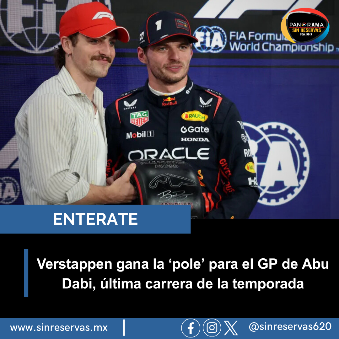 Abu Dabi.— El cuádruple campeón mundial neerlandés Max Verstappen (Red Bull) saldrá desde la primera posición este domingo en el Gran Premio de Abu Dabi, la última carrera de la temporada 2024 de la Fórmula 1, que se disputa en el circuito de Yas Marina.
