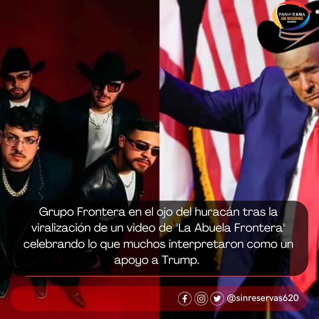 Grupo Frontera en el ojo del huracán 🔥🎶 Un video viral de “La Abuela Frontera” aparentemente celebrando la victoria de Donald Trump ha desatado una tormenta en redes 🌪️. La banda, con raíces latinas, enfrenta críticas de seguidores que consideran que este respaldo contradice los valores de la comunidad migrante.