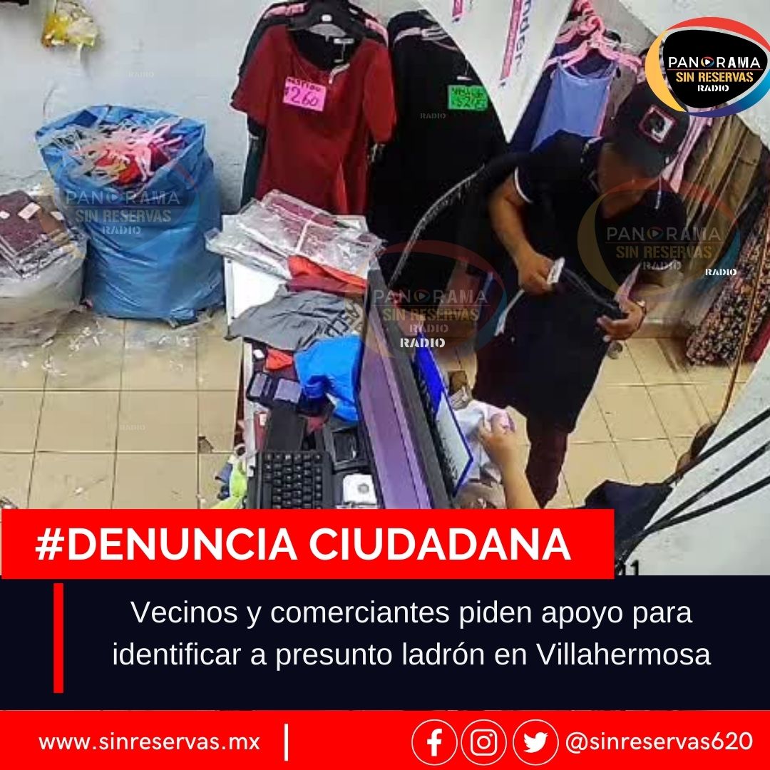 Comerciantes de la calle Pino Suárez, en la colonia Centro de Villahermosa, piden la colaboración ciudadana para identificar y reportar al presunto responsable de un robo ocurrido recientemente en una tienda de ropa para dama.