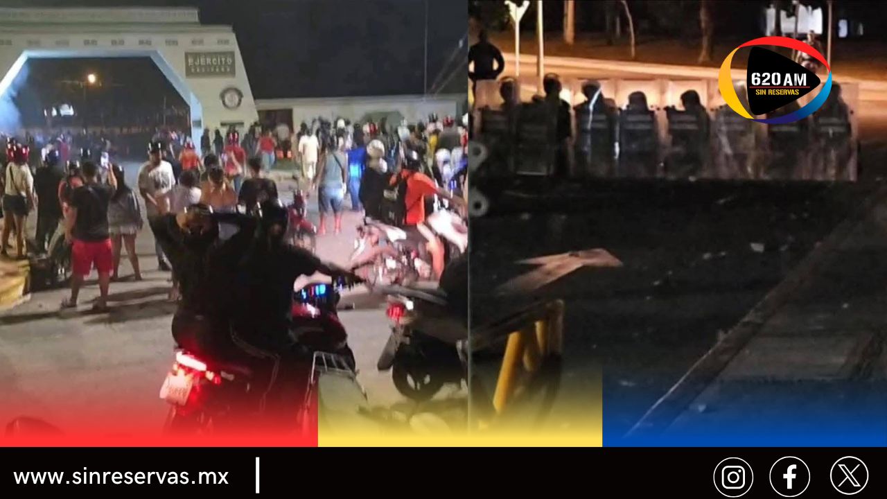 Lo que comenzó como una protesta pacífica derivó en enfrentamientos: más de 500 habitantes se congregaron frente a la base militar y lanzaron piedras, palos y bombas molotov contra la caseta de vigilancia. En medio del caos, se escucharon detonaciones de arma de fuego, presuntamente disparos al aire hechos por militares para dispersar a la multitud. Una mujer resultó herida y fue trasladada al hospital.