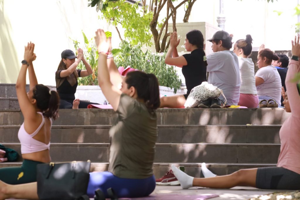 Una grata y relajante experiencia vivieron esta mañana las y los asistentes a YogArte, actividad dirigida por Marcela Fernández en las Escalinatas del Arte de la calle Lerdo. Este emblemático espacio del Barrio Mágico se consolida como un punto de encuentro para la recreación a través de actividades físicas, artísticas y culturales.