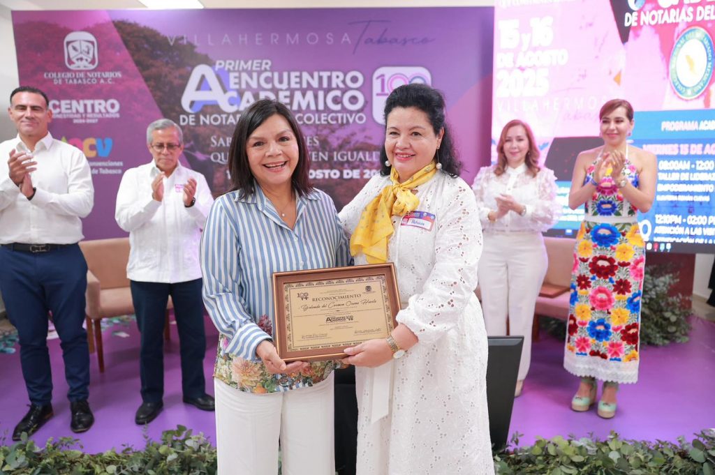 Durante la inauguración del Primer Encuentro Académico de Notarías del Colectivo 100 y +, la alcaldesa de Centro, Yolanda Osuna Huerta, resaltó que la función notarial no solo formaliza actos jurídicos, sino que también brinda certeza a patrimonios y proyectos de vida, actuando como un escudo contra la ilegalidad y un pilar del Estado de derecho.