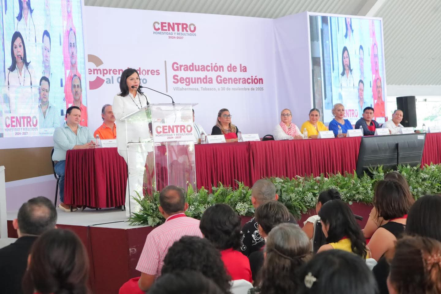 El evento, realizado en el Gran Salón del parque Tomás Garrido Canabal, contó con la presencia de presidentes de cámaras empresariales, instructores, emprendedores y público en general. Durante su mensaje, la alcaldesa afirmó que esta graduación representa mucho más que un acto protocolario, ya que demuestra el impacto real de las políticas públicas bien diseñadas.
