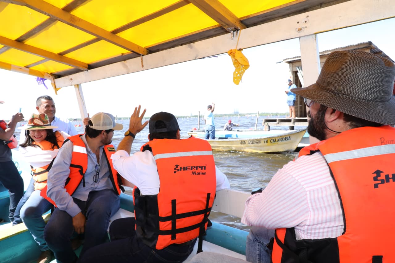 Algunos, como los de la Comunidad de Aprendizaje Acuícola “Perlas Ostioneras” rompían con su grito el ronroneo de los motores y expresaban a la distancia, pero en la cercanía de un sentimiento, su agradecimiento. En la misma lancha del mandatario también iban los subsecretarios de Desarrollo Agrícola y Ganadería, Joaquín Alejandro Ligonio, y el de Pesca y Acuacultura, Guillermo Priego León.