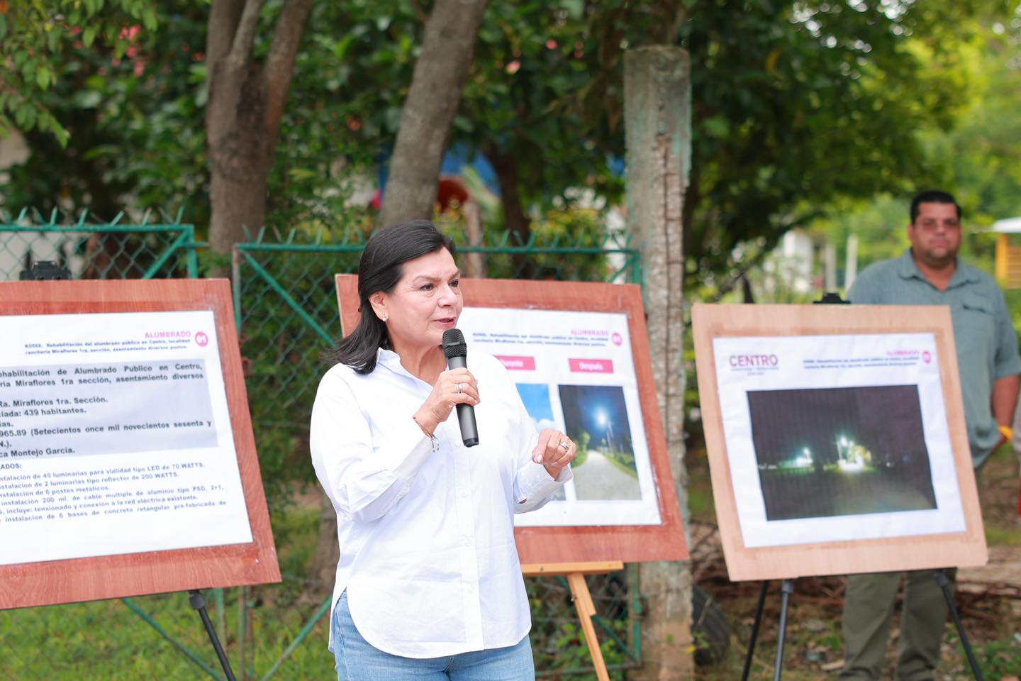Yolanda Osuna Huerta entrega obras en comunidades de Jonuta: más luminarias, caminos y pavimentación